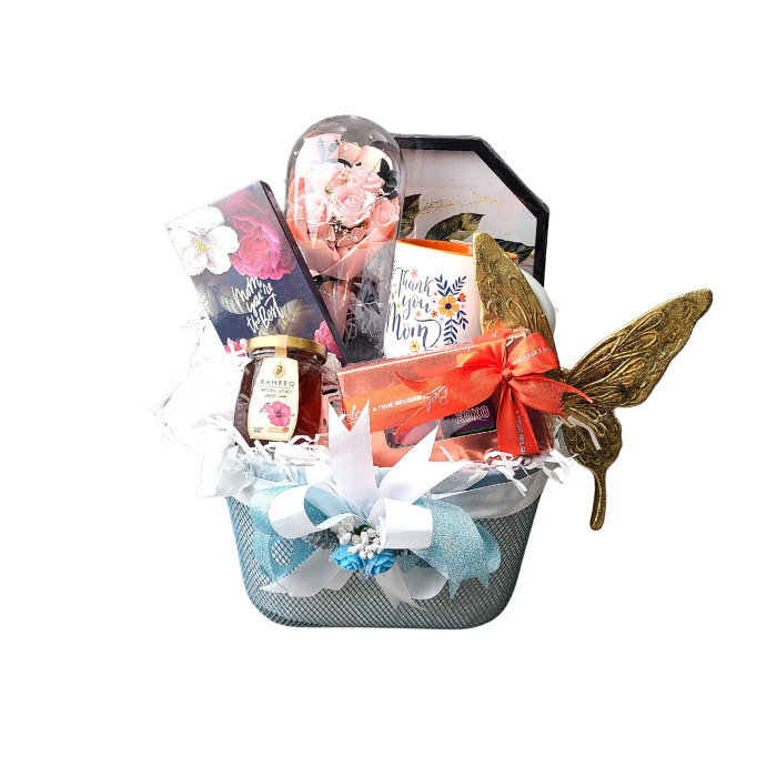 Celebrate Mom with the Blue Bloom Nostalgia Nest Basket a heartfelt gift featuring a fruit basket. Perfect for making her day extra special