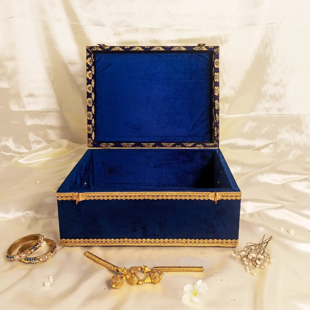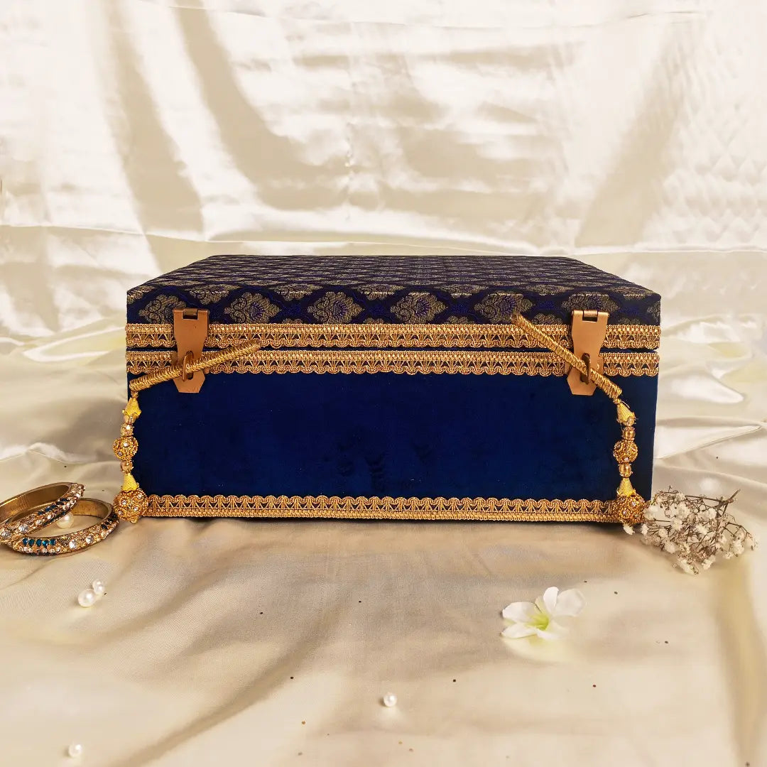 The carefully crafted design work that has both beauty and durability is what we come up with as our **Velvet Trunk Box**. The exquisite design blended with premium velvet will make it even beautiful in a house. Quality materials and attention to detail make the trunk box an incredible gift for newlywed couples who can remember it for many years to come. It is not just a gift but a keepsake that can be held dear by the couple for such extended durations.