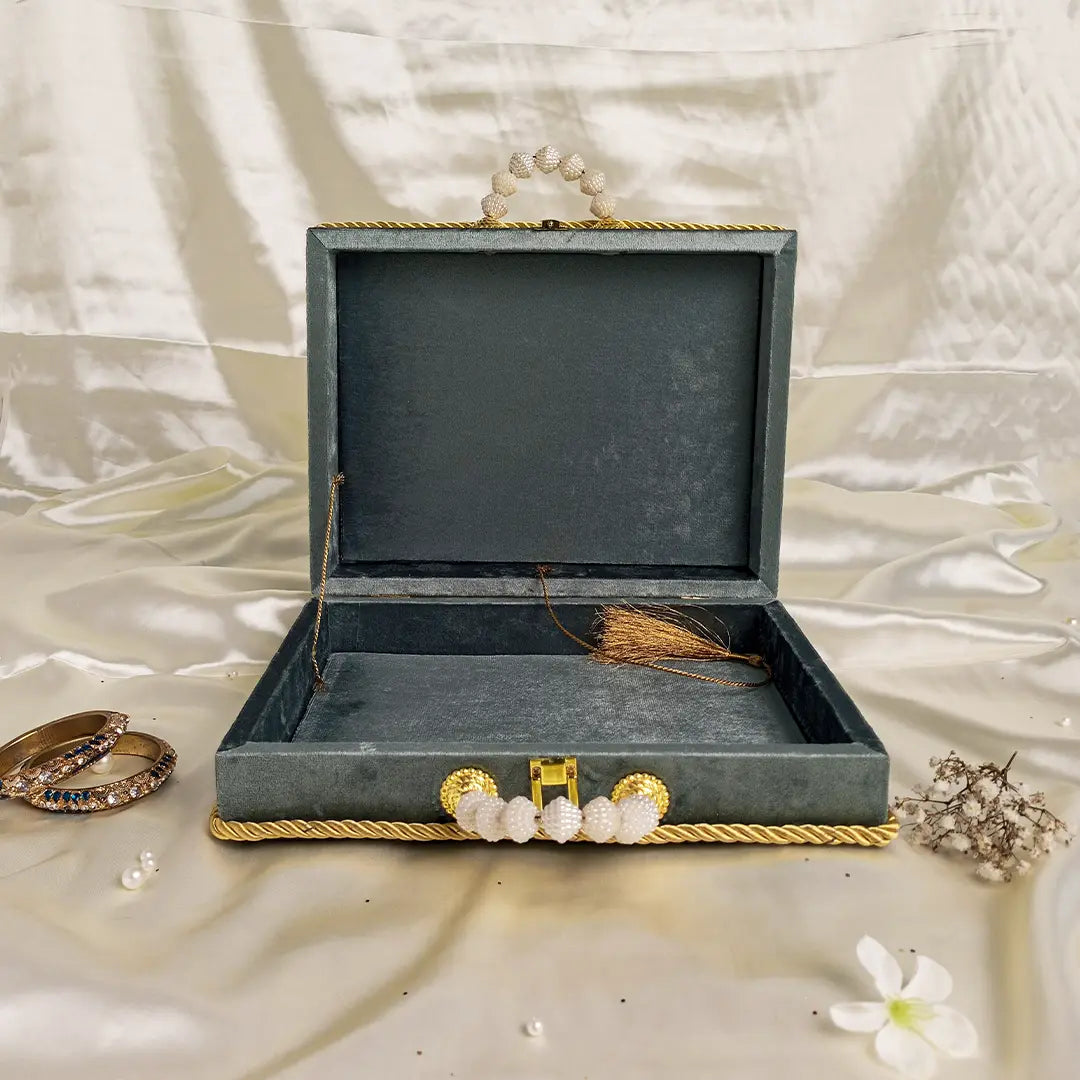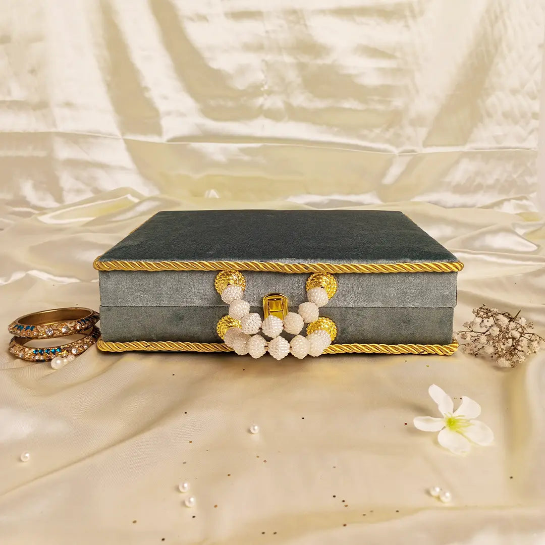 Designed to add functionality to elegance, this Turkey Brief Case Box Grey is filled with ample storage space for documents and cash envelopes, as well as jewellery. It will be with them for years to come and becomes a feature within their new home. This briefcase box will show a touch of luxury while also depicting the occasion as such and special in its importance.