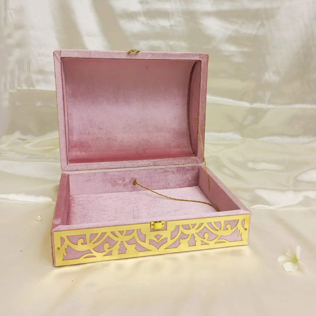 Velvet Wedding Card Box Pink is from the best-quality velvet; hence, it becomes a rich piece with classy appeal. Pink color symbolizes love and elegance; so, this color with happiness and romance at a wedding can be absolutely perfect. The fine workmanship ensures that the product is durable for a long time: something that will look beautiful even after years in a wedding couple's home.